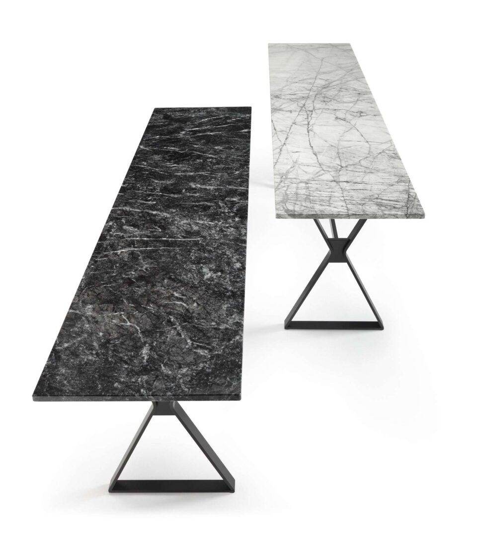 Alfieri console haut de gamme par Vittoria Frigerio avec base métallique sculpturale et plateau en marbre élégant. Disponible chez D-Style Interior.Alfieri console haut de gamme par Vittoria Frigerio avec base métallique sculpturale et plateau en marbre élégant. Disponible chez D-Style Interior.