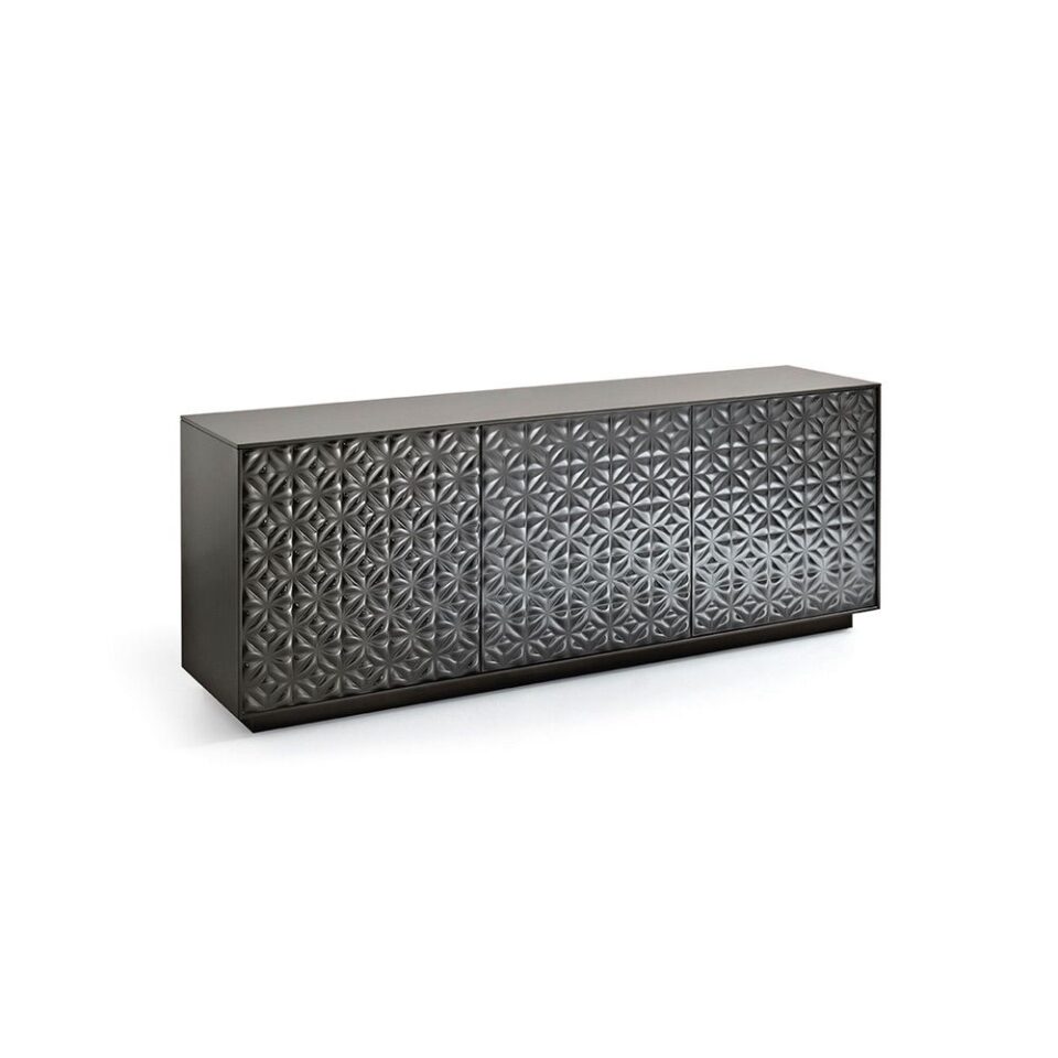 Lanza buffet en cuir par Vittoria Frigerio, finitions bois nobles, étagères en verre et éclairage LED. Une pièce haut de gamme disponible chez D-Style Interior.Lanza buffet en cuir par Vittoria Frigerio, finitions bois nobles, étagères en verre et éclairage LED. Une pièce haut de gamme disponible chez D-Style Interior.
