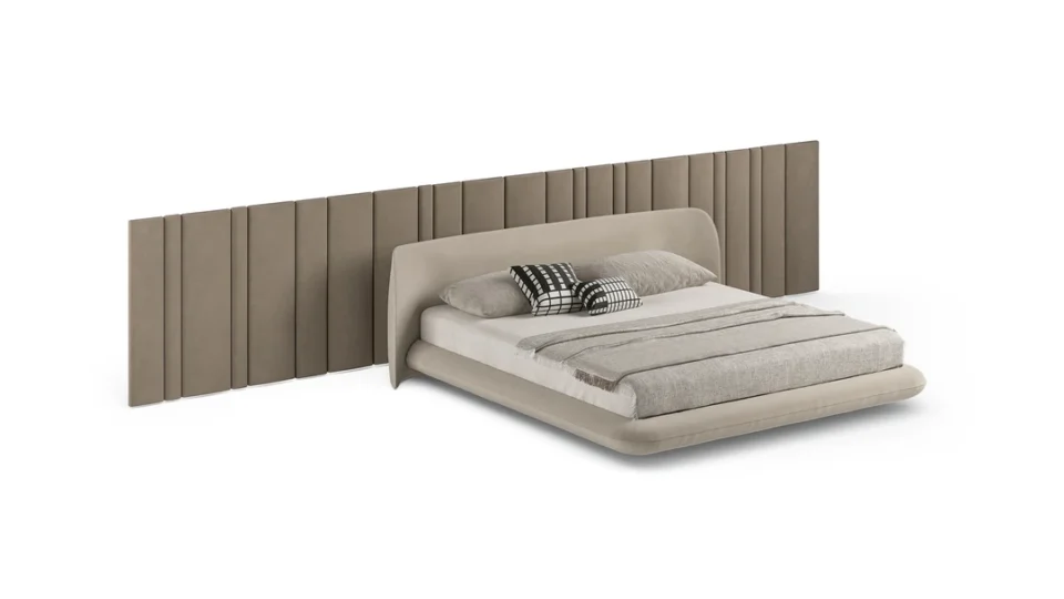 Medici grand lit design haut de gamme avec grand tête de lit capitonnée, coussins lombaires intégrés et structure épurée. Disponible chez D-Style Interior.Medici grand lit design haut de gamme avec grand tête de lit capitonnée, coussins lombaires intégrés et structure épurée. Disponible chez D-Style Interior.
