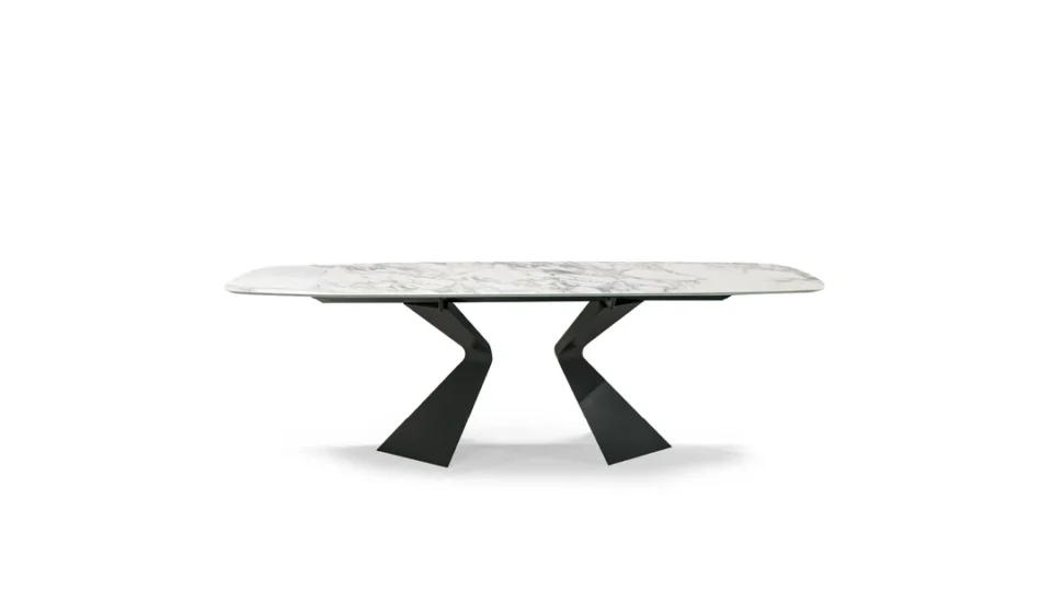 Milos table à manger de Gamma Arredamenti associe cuir, bois courbé et plateau en marbre, verre ou céramique. Élégance italienne disponible chez D-Style Interior.Milos table à manger de Gamma Arredamenti associe cuir, bois courbé et plateau en marbre, verre ou céramique. Élégance italienne disponible chez D-Style Interior.