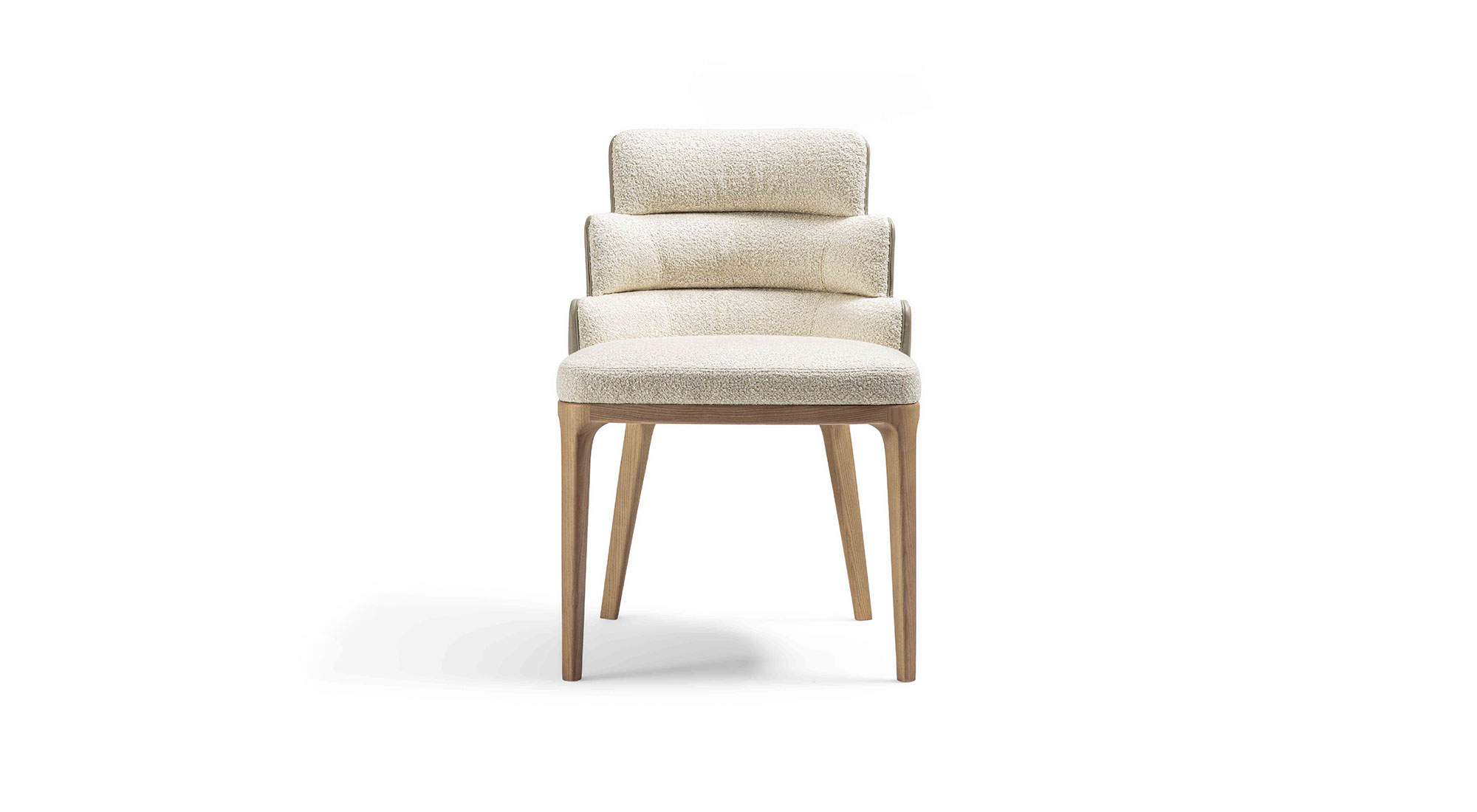 Audrey de Vittoria Frigerio est une collection qui célèbre l’équilibre parfait entre sculpture et confort. Déclinée en Chaise, petite chauffeuse et Chaise, cette ligne incarne une élégance contemporaine où les volumes pleins dialoguent avec la délicatesse artisanale. Les formes superposées et arrondies composent une silhouette harmonieuse, évoquant douceur et accueil, tandis que le dossier généreusement rembourré enveloppe le corps dans un confort raffiné.
