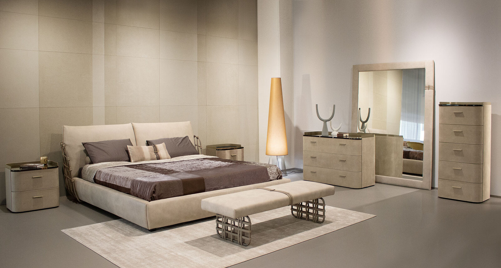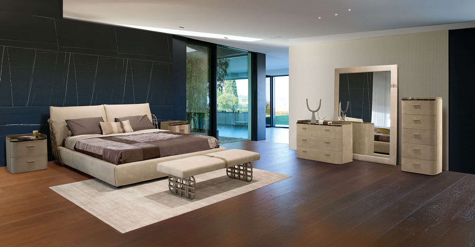 Chaque détail témoigne du savoir-faire artisanal de la maison Gamma Arredamenti. Les bords délicatement soulignés de métal laqué s’associent à une structure recouverte de cuir véritable, créant un contraste élégant entre brillance et texture. Les volumes arrondis apportent douceur et légèreté, tandis que les tiroirs spacieux et les portes à ouverture fluide garantissent une utilisation pratique au quotidien.