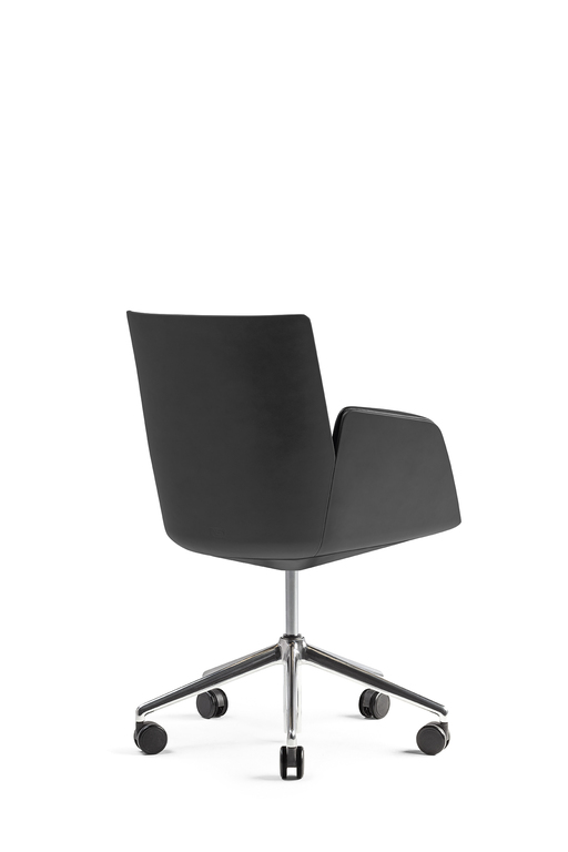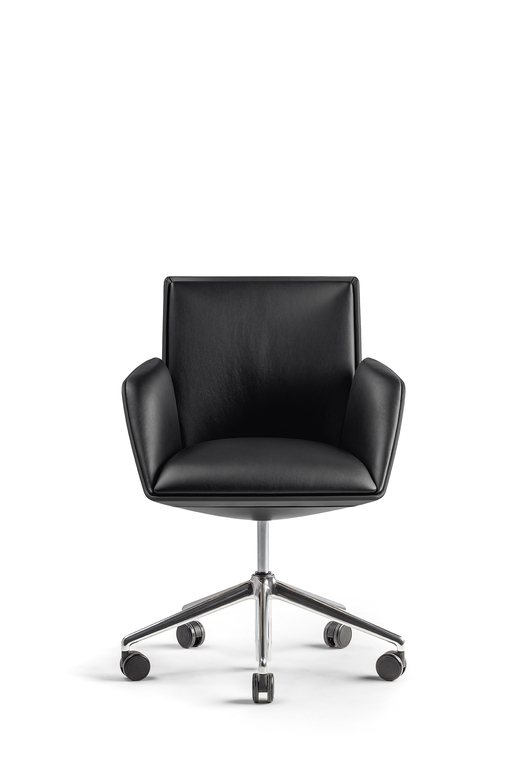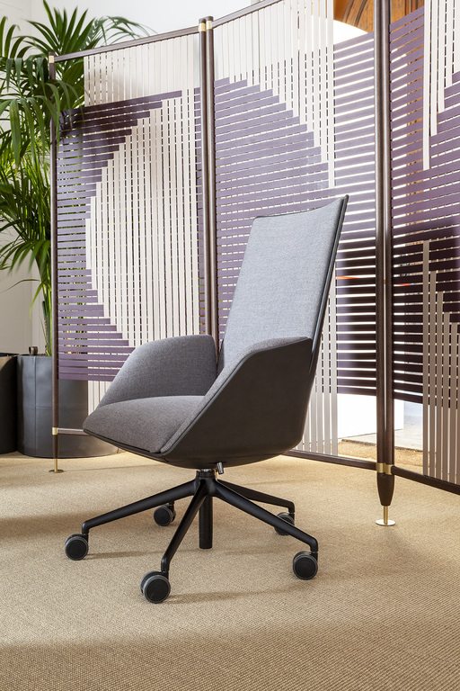 Le fauteuil Cercle est disponible entièrement en cuir Pelle Frau® ou en combinaison cuir-tissu, avec des accoudoirs adaptables. Son design harmonieux et contemporain favorise le partage et la collaboration, s’inscrivant dans une vision moderne de l’espace de travail : un environnement où créativité, communication et bien-être coexistent. Disponible chez D-Style Interior.