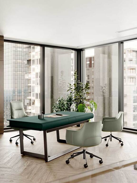 Sa structure repose sur une base en aluminium robuste avec mécanisme pivotant et réglage de la hauteur par vérin à gaz, permettant un confort personnalisé et un ajustement précis. Le dossier haut de l’Executive assure un soutien optimal du dos et des épaules, tandis que l’inclinaison et l’oscillation du siège sont facilement ajustables pour suivre les mouvements naturels du corps. Les roulettes souples à freinage automatique garantissent mobilité et sécurité sur tous types de sols.