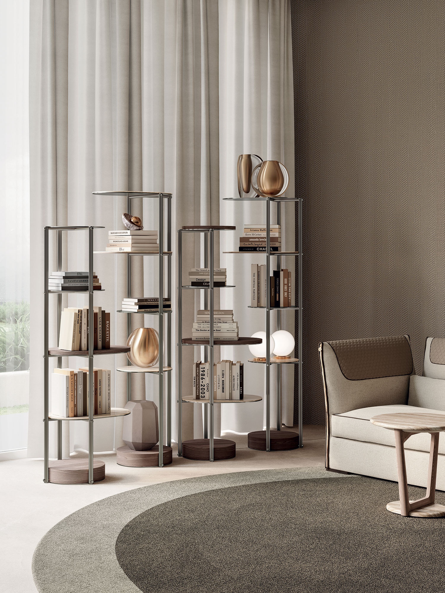 Doge bibliothèque de Vittoria Frigerio est conçue comme un élément autoportant qui combine élégance, modularité et liberté de composition. Sa structure verticale crée un rythme architectural raffiné, pensé pour fonctionner seule ou en ensemble. Deux, trois ou plusieurs modules peuvent être associées afin d’obtenir une composition sur mesure, parfaitement adaptée aux besoins d’un intérieur contemporain.