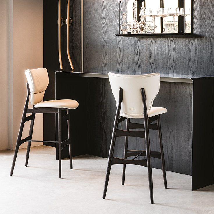 Pensé pour durer, le tabouret Dumbo met en avant la maîtrise artisanale italienne dans toute sa splendeur. Il allie ergonomie et esthétique pour offrir une expérience d’assise unique. Ce modèle est disponible en deux hauteurs afin de s’adapter à différents types de comptoirs. Chaque tabouret est le fruit d’une fabrication de précision, où la beauté du bois rencontre la douceur du revêtement.