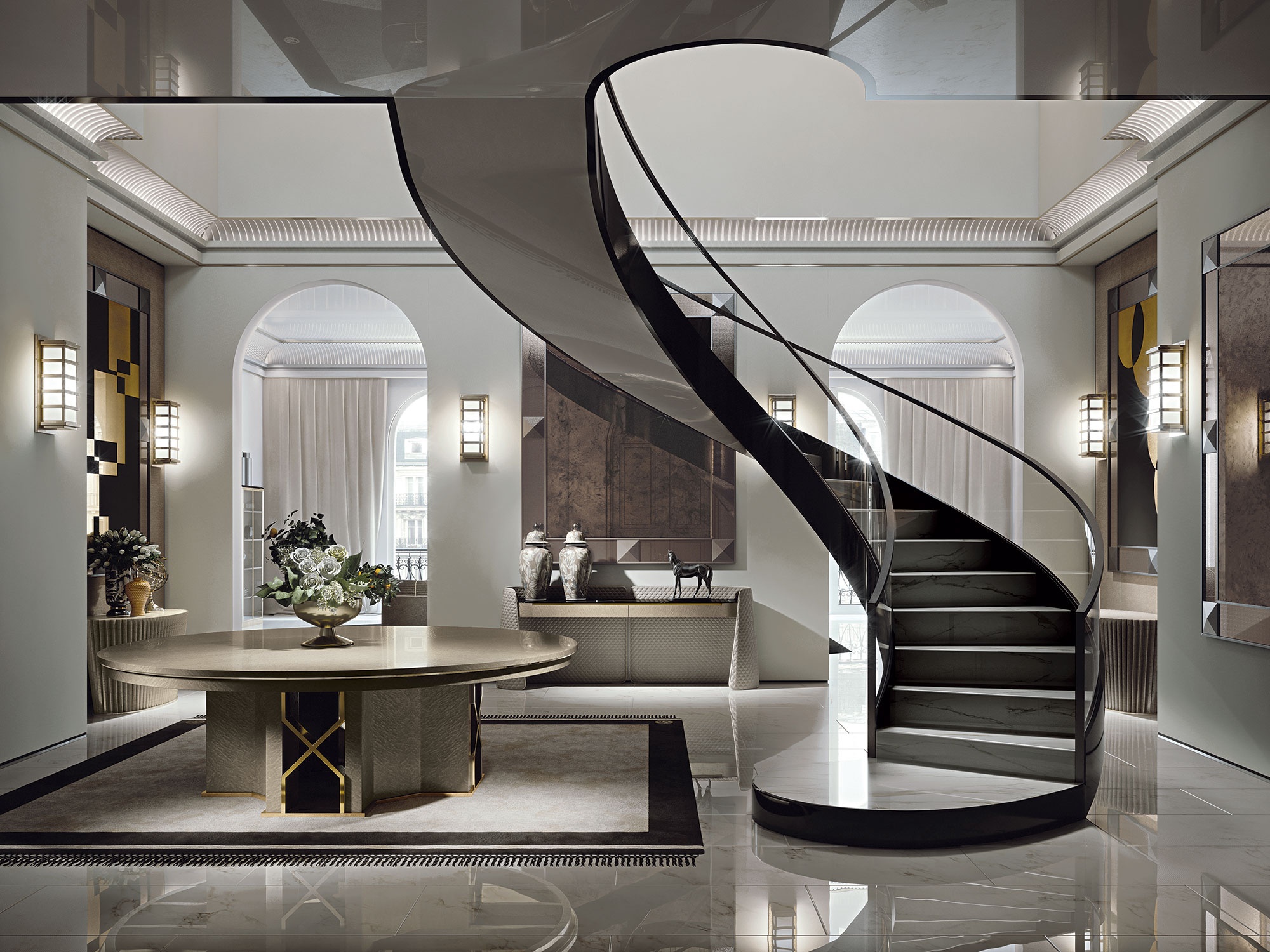 La collection Grimaldi propose des versions rondes et rectangulaires, permettant de s’adapter à différents environnements, du salon contemporain à la salle à manger plus formelle. Les finitions métalliques – Burnished, Sand Sablé, Gold Chrome ou Patinated Bronze – enrichissent le design et ajoutent une dimension décorative tout en respectant l’équilibre sobre du meuble. Des finitions supplémentaires sont disponibles sur demande, permettant une personnalisation fine pour répondre aux besoins des projets les plus exigeants.