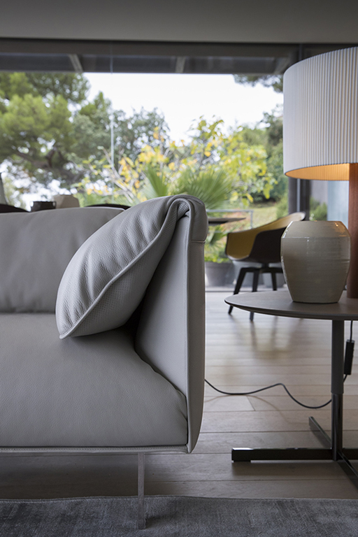 Ce canapé design haut de gamme se distingue par sa ligne allongée et ses pieds en aluminium finition Ruthénium qui accentuent son élégance contemporaine. Les embouts de protection en matière plastique transparente préservent les sols tout en maintenant une discrétion visuelle. L’assise large et accueillante, caractéristique de la vision de Jean-Marie Massaud, transforme ce canapé en un véritable lieu de détente et de convivialité.