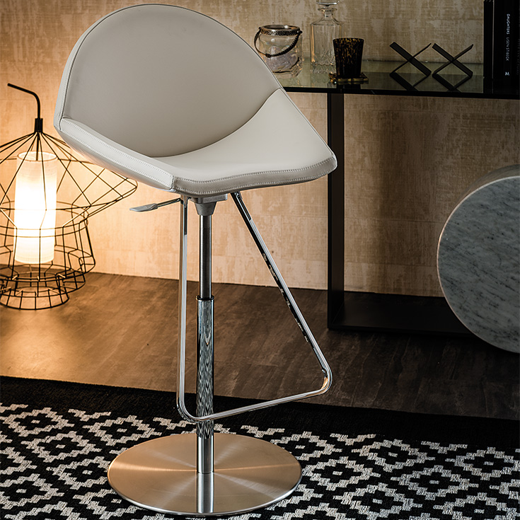 Le tabouret Kiss de Cattelan Italia est l’expression ultime du design minimaliste et fonctionnel. Sa structure tournante ultralégère, combinée à un piston à gaz réglable en hauteur, offre un confort personnalisé, que ce soit autour d’un îlot de cuisine ou d’un bar contemporain. La conception ergonomique du dossier et de l’assise rembourrée garantit une posture agréable même lors d’une utilisation prolongée.