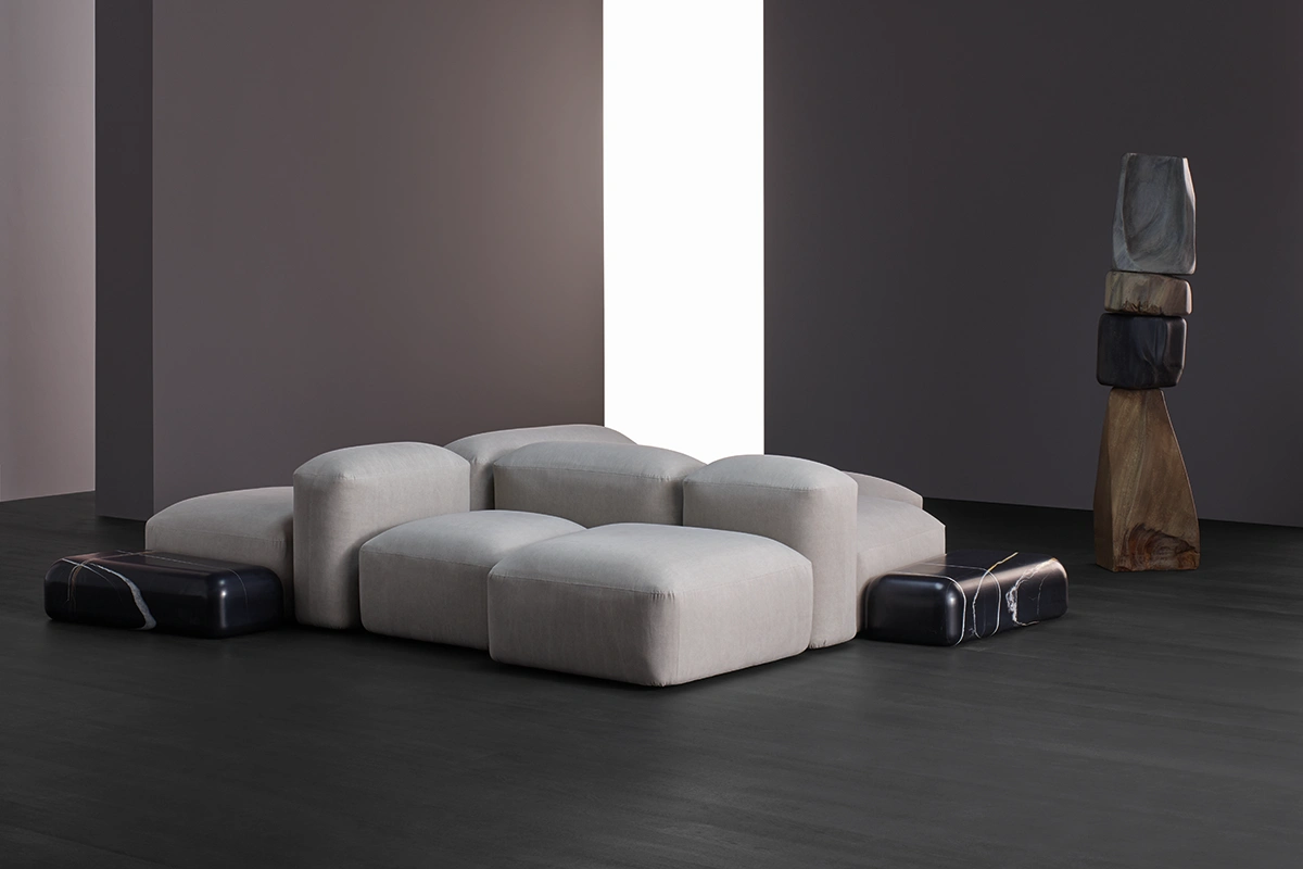 Inspirée des formes organiques de la nature, la Lapis par Amura Lab est une collection de tables basses qui réinterprète le lien entre la matière et la terre. Conçue par Emanuel Gargano et Anton Cristell, cette création s’inspire des pierres façonnées par le temps, évoquant des masses minérales qui semblent émerger spontanément d’un sol archaïque. Chaque module se distingue par une géométrie fluide et irrégulière, véritable hommage à l’imperfection naturelle et à la beauté brute de la Terre.