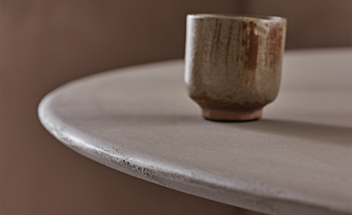 Réalisée selon une technique de moulage à froid respectueuse de l’environnement, cette table ne nécessite aucune ressource énergétique excessive. Chaque pièce est minutieusement façonnée et finie à la main avec une pâte d’argile naturelle, disponible en teintes Havana (AR04), Cairo (AR05), Oslo (AR09) ou Marrakech (AR11). Les irrégularités et nuances du matériau font partie intégrante de son charme et témoignent d’un savoir-faire authentique.