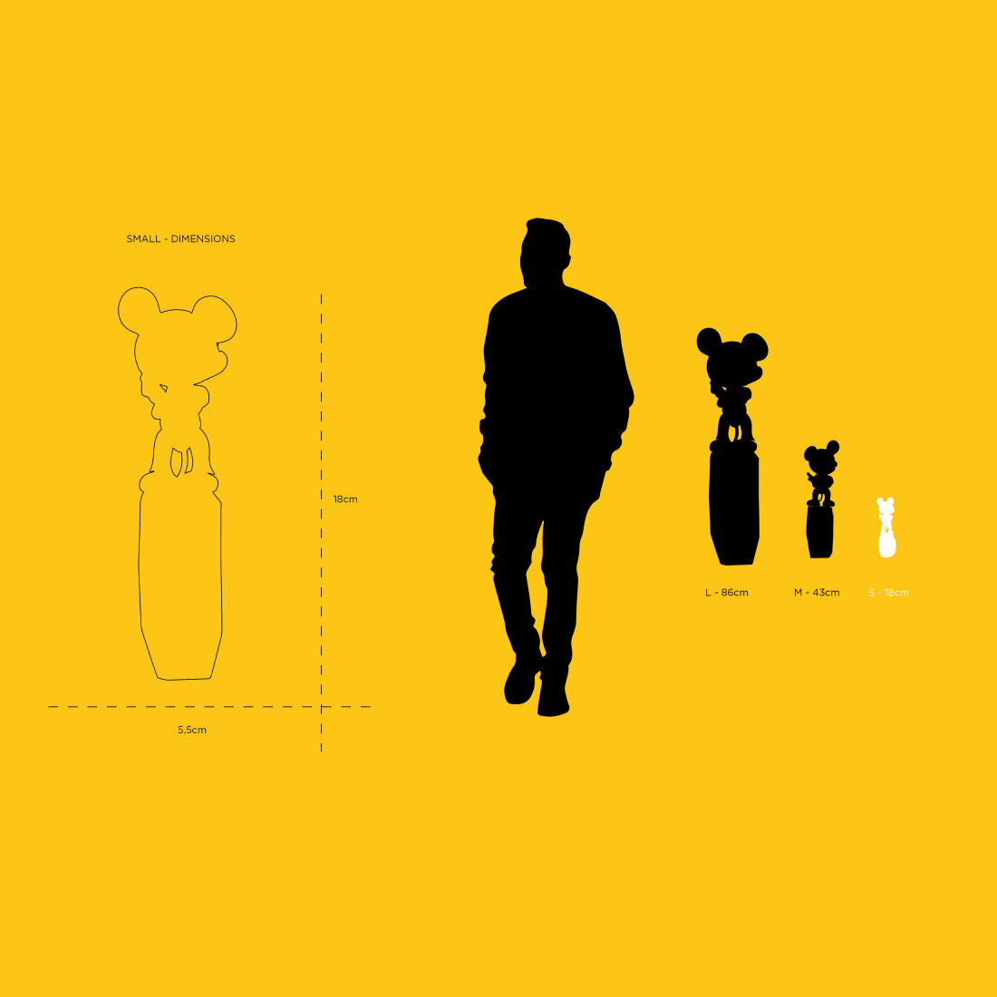 Mickey Rock Small est une Sculpture design haut de gamme qui réinterprète l’iconique Mickey Mouse à travers la vision artistique de Leblon Delienne. Cette création va au-delà de la simple intégration d’idées artistiques à une icône Disney. Mickey n’apparaît pas seulement drôle et joyeux, mais également fier et satisfait, incarnant pleinement son univers avec élégance et expressivité. Chaque détail, des bras aux doigts et jusqu’à la posture de la tête, est minutieusement pensé pour traduire le caractère unique et dynamique de Mickey.