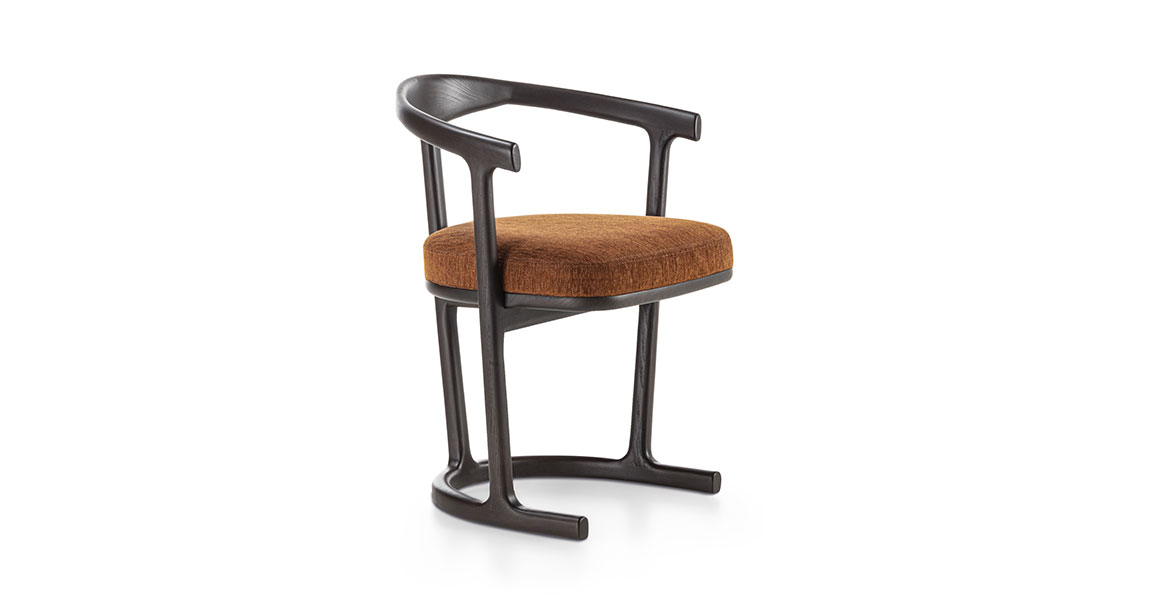Mora chaise par Vittoria Frigerio est une pièce raffinée qui incarne l’équilibre parfait entre élégance et confort. Son design intemporel, signé par Studio Cattaneo Design, met en valeur une structure en frêne massif, disponible en plusieurs finitions comme Wengé, Tabac ou Réglisse. Les lignes courbes de son piètement se prolongent naturellement jusqu’aux accoudoirs, créant une silhouette fluide et harmonieuse.