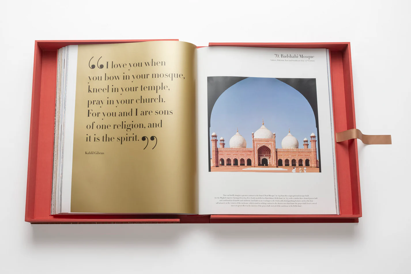 Ideal for display on a display stand or designer coffee table, Mosques captivates with its encyclopedic content and monumental presence. It embodies the quintessence of luxury publishing, making this book a heirloom to be cherished for future generations.