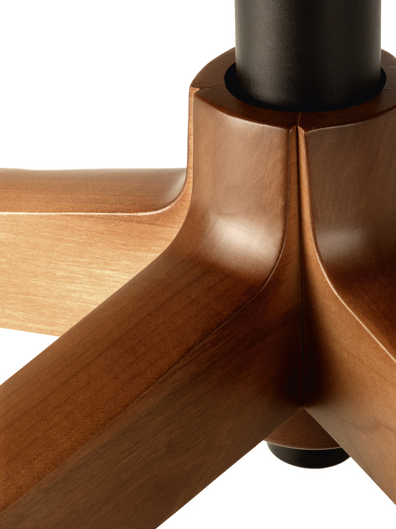 Le piètement à cinq branches, disponible en aluminium poli ou peint en noir, assure stabilité et élégance. Le fauteuil est entièrement pivotant à 360° et réglable en hauteur grâce à un ressort à gaz, permettant également l’inclinaison du dossier avec blocages intermédiaires pour un soutien optimal tout au long de la journée. Les roulettes auto-freinantes garantissent sécurité et maniabilité, même dans les espaces de bureau les plus exigeants.