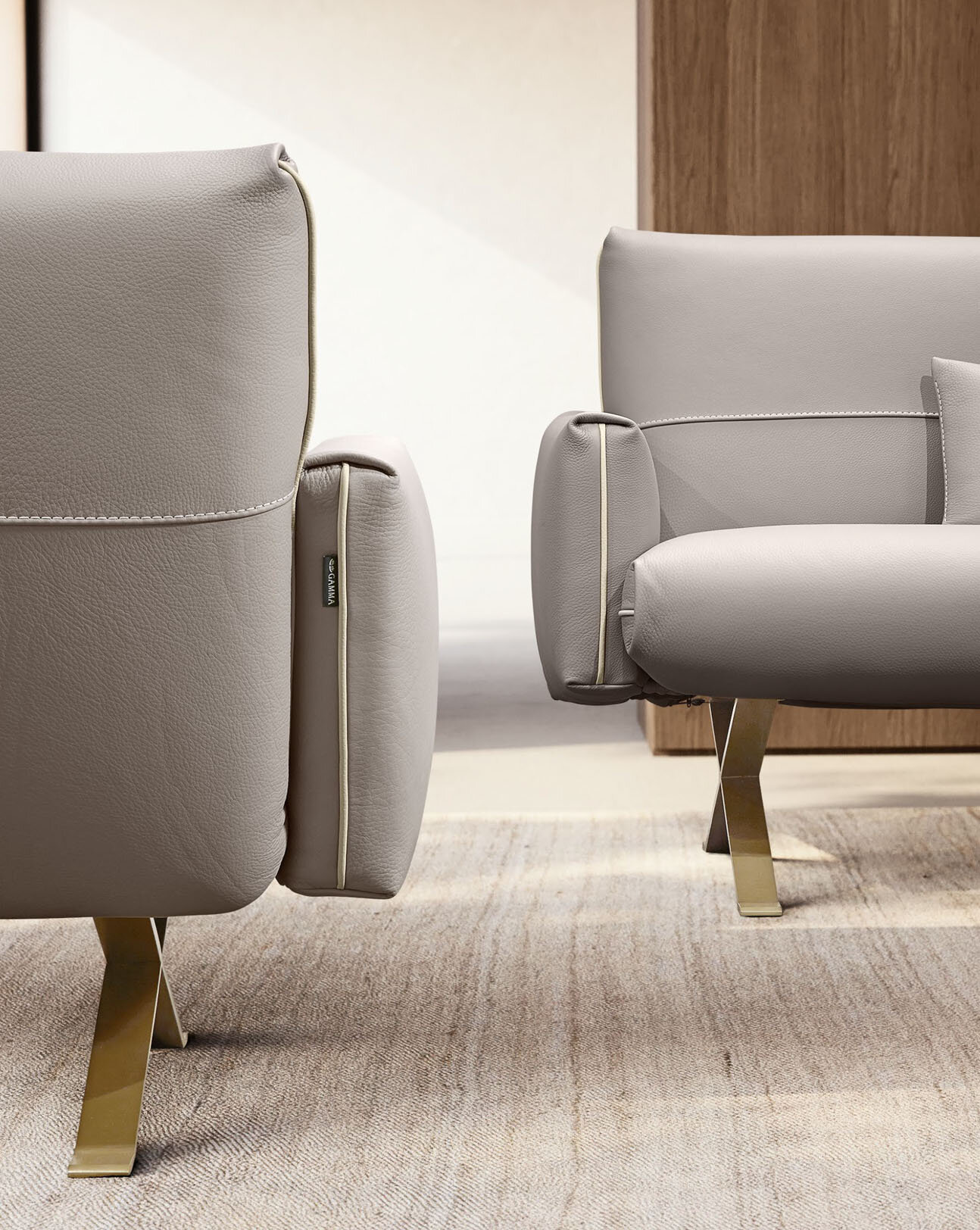 Le dossier et l’assise, aux lignes fines et légèrement courbées, offrent un confort ergonomique exceptionnel. Chaque détail du Rialto reflète la maîtrise artisanale de Gamma Arredamenti : coutures précises, finitions méticuleuses et proportions harmonieuses. La base en métal croisé, disponible dans plusieurs finitions, apporte une touche contemporaine et légère qui valorise le cuir de première qualité.