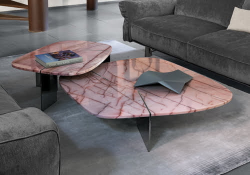 Rumors, imaginée par Mauro Lipparini pour Arketipo, est une collection de tables basses sculpturales où le marbre devient le véritable protagoniste. Matériau précieux, théâtral et intemporel, il donne vie à des pièces uniques au caractère sophistiqué.