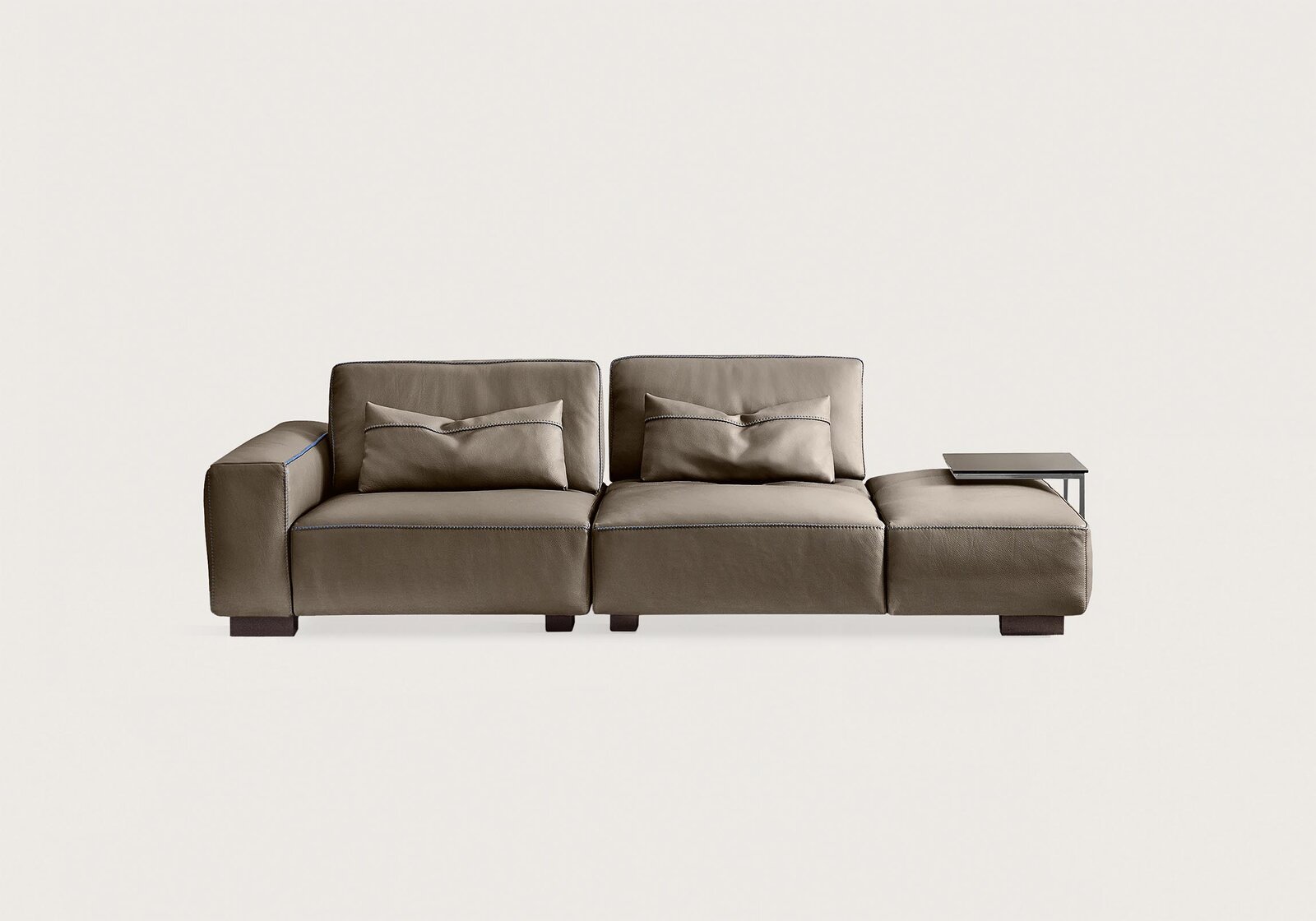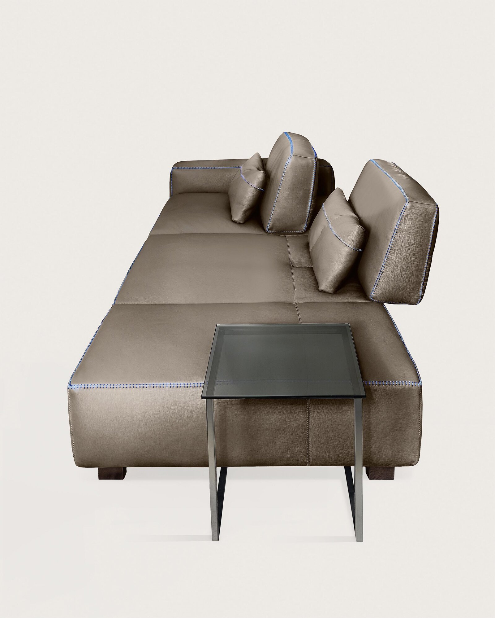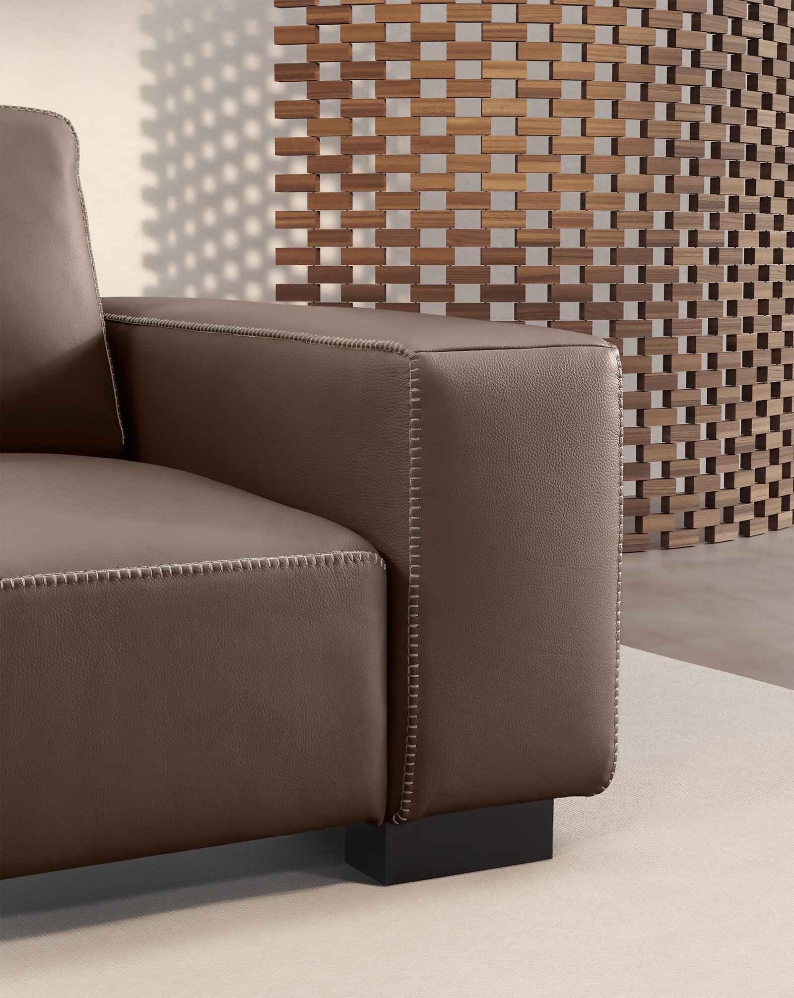 La beauté naturelle du cuir pleine fleur est sublimée par de larges panneaux de cuir et des coutures bord à bord qui témoignent de la qualité et de la précision artisanale propres à la maison Gamma. Le mécanisme de translation intégré au dossier, y compris dans les éléments d’angle, permet d’ajuster la profondeur du siège selon vos besoins, garantissant un confort personnalisé pour chaque moment de détente.