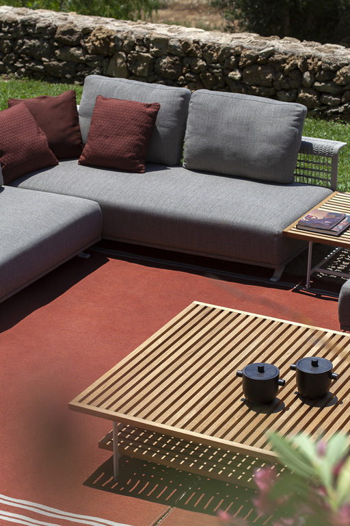 Ce qui distingue la collection Solaria est son approche holistique de l’aménagement. Les volumes généreux et la composition simple créent des îlots horizontaux qui définissent l’espace sans créer de barrières, sous le signe de la légèreté et du confort. L’alternance de pleins et de vides dans le tressage dématérialise les objets et permet de percevoir l’espace dans sa globalité, créant une fluidité entre les différentes zones.