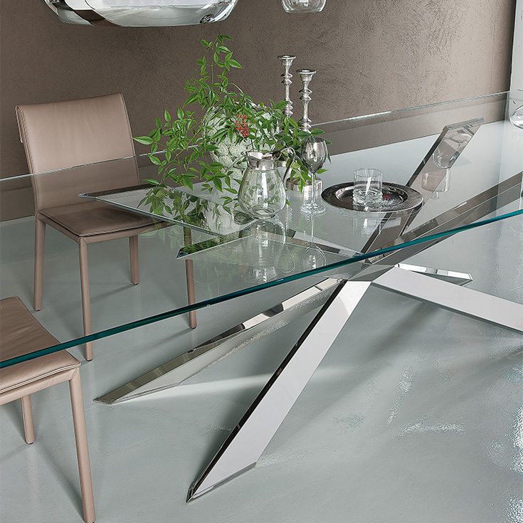 Spyder table de Cattelan Italia incarne l’équilibre parfait entre légèreté visuelle et puissance architecturale. Son plateau en verre transparent laisse apparaître une base spectaculaire en bois massif, sculptée en forme de X, qui donne à l’ensemble une allure graphique et sophistiquée. Ce contraste entre la transparence du verre et la chaleur du bois crée une harmonie élégante, idéale pour sublimer un salon contemporain ou une salle à manger raffinée.