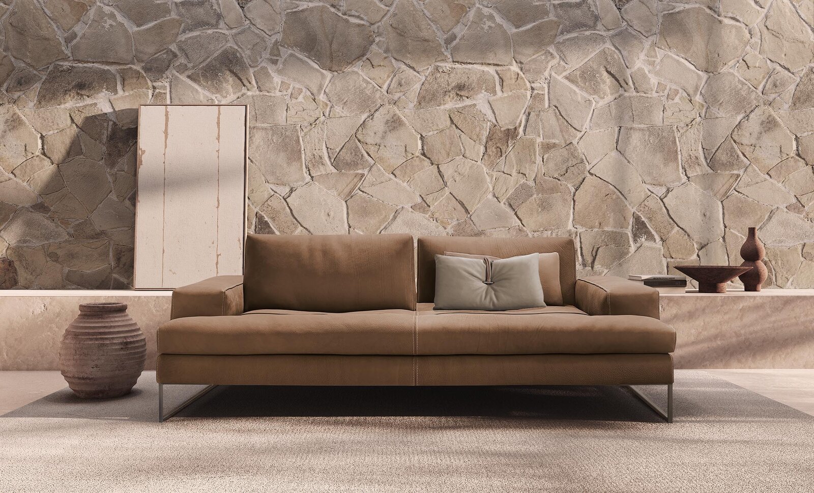 Reconnu comme l’un des modèles les plus emblématiques de la collection Gamma, le canapé Sunset séduit par sa silhouette raffinée et ses finitions soignées. Les coutures apparentes et le cuir perforé du coussin de dossier témoignent du savoir-faire artisanal qui distingue la marque. La structure légère est rehaussée de pieds chromés élancés qui confèrent au modèle une allure aérienne et contemporaine. Idéal pour les grands salons ou les espaces ouverts, il crée une atmosphère chaleureuse et conviviale tout en affirmant un caractère design.