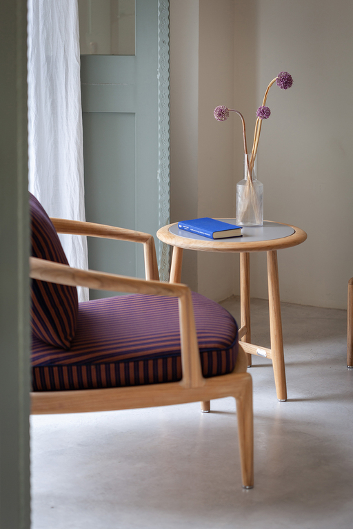 The Secret Garden | Table basse est une table basse design haut de gamme créée par le designer Roberto Lazzeroni pour Poltrona Frau. Elle incarne la rencontre harmonieuse entre artisanat italien et élégance naturelle. Réalisée en bois de teck massif à finition naturelle et dotée d’un plateau en grès émaillé fini à la main, cette pièce de mobilier d’extérieur se distingue par sa qualité exceptionnelle et son esthétique intemporelle. Chaque détail reflète la recherche d’équilibre entre fonctionnalité, durabilité et raffinement.