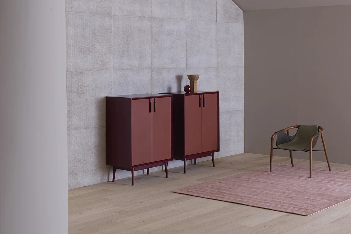 Les poignées fines en bois, dessinées avec précision, ajoutent une touche graphique qui souligne la verticalité de la pièce. Reposant sur des pieds coniques, Theo s’élève avec légèreté tout en conservant une présence sculpturale. Ce meuble se fond harmonieusement dans différents environnements — du salon résidentiel à l’espace d’accueil d’un hôtel, d’une boutique à une bibliothèque d’ambiance contemporaine. Sa sobriété intemporelle permet à Theo de dialoguer naturellement avec différents styles d’intérieurs, sans jamais perdre son identité élégante.