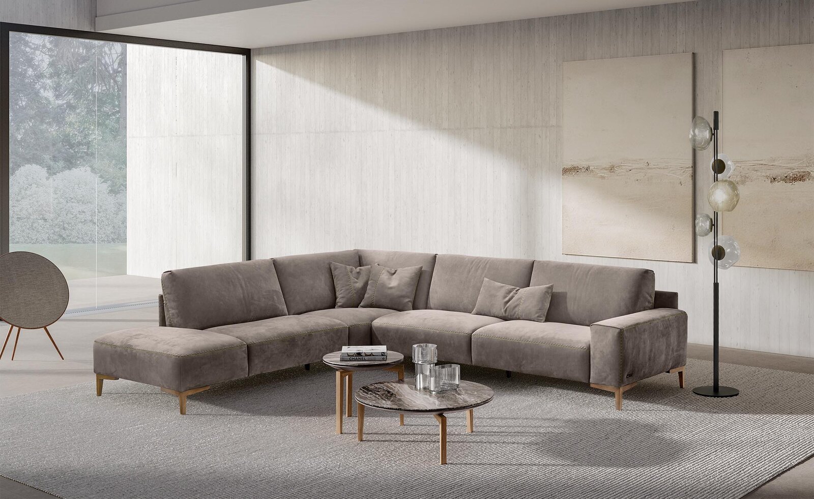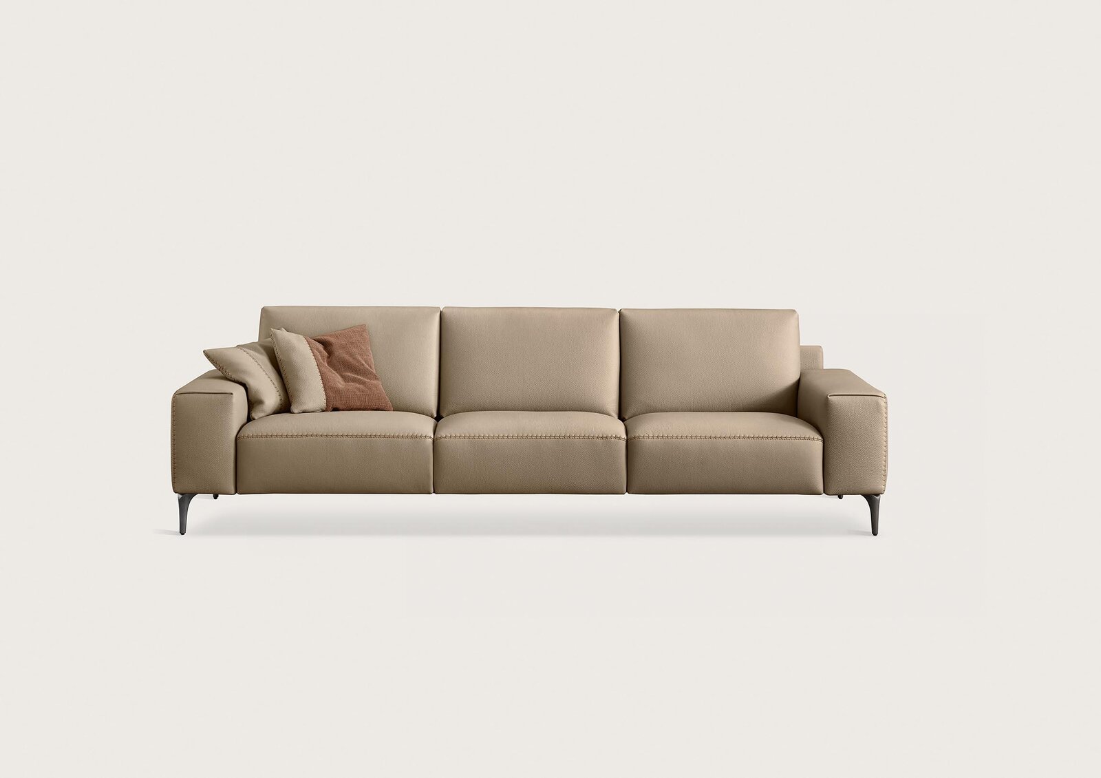 Twiga de Gamma Arredamenti est un canapé sectionnel en cuir au design contemporain, alliant élégance et technologie. Son esthétique raffinée se distingue par la nouvelle surpiqûre « parallèle », un détail sophistiqué qui met en valeur la douceur de ses formes et devient un signe distinctif du savoir-faire artisanal de la marque. Cette couture, disponible dans une teinte au choix, souligne la personnalité unique de chaque composition.