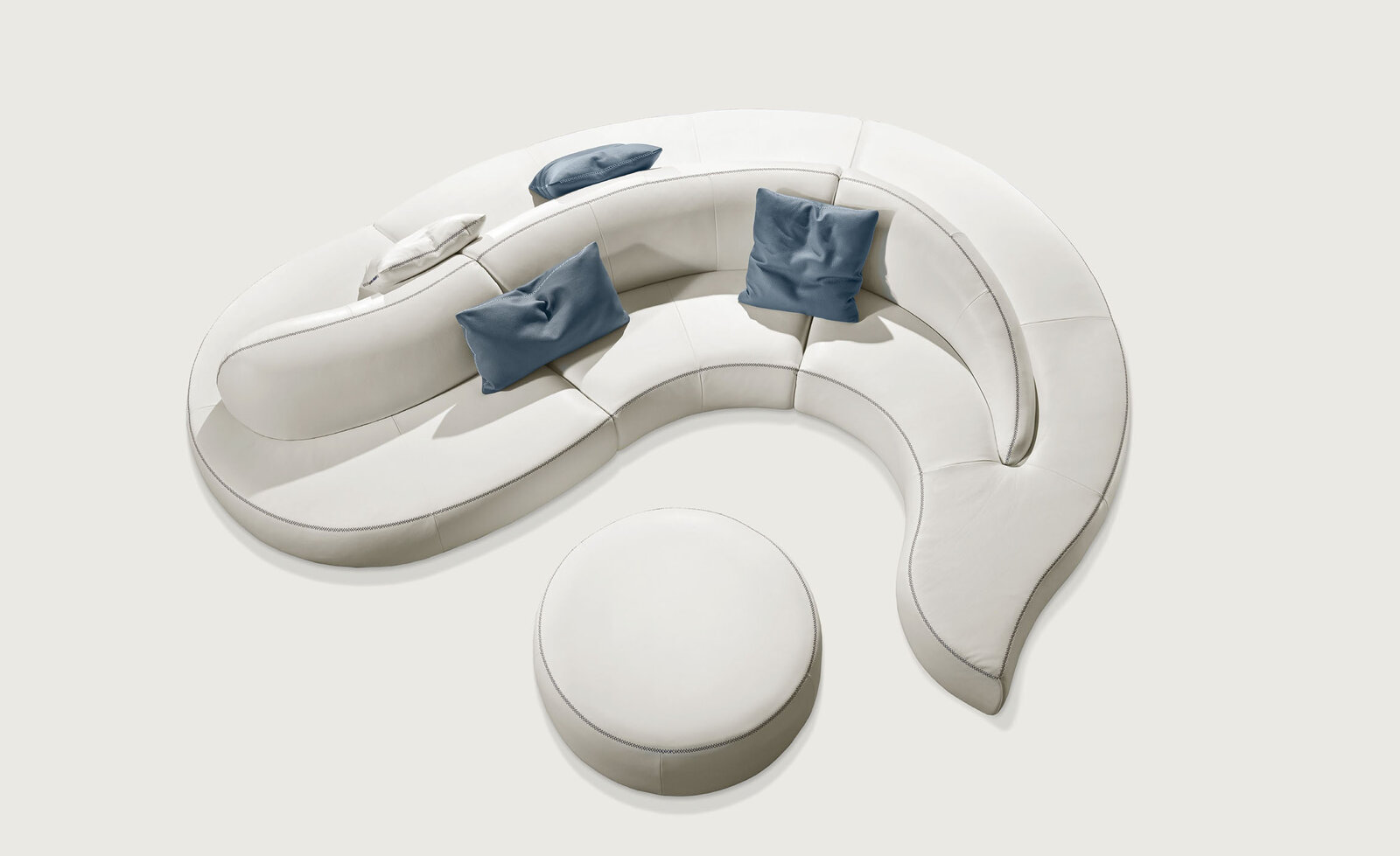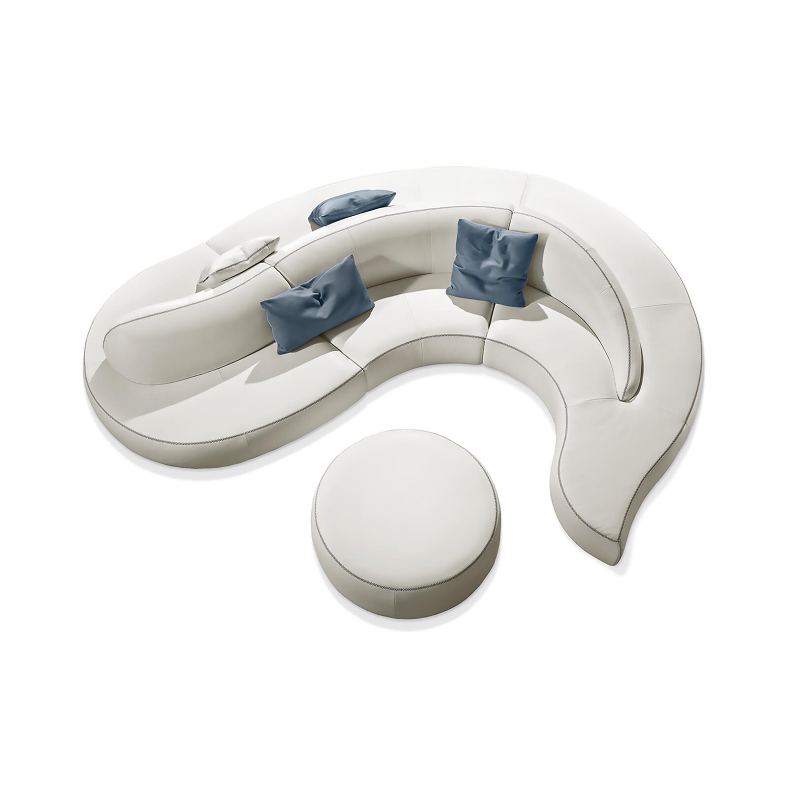 Wave de Gamma Arredamenti est un canapé incurvé en cuir haut de gamme au design fluide et sculptural, conçu pour habiller les espaces les plus élégants. Avec ses courbes harmonieuses et son allure architecturale, il incarne la rencontre parfaite entre confort et esthétique contemporaine. Chaque ligne de ce canapé évoque le mouvement d’une vague, soulignée par des coutures raffinées qui mettent en valeur la qualité exceptionnelle du cuir et la précision du travail artisanal italien.