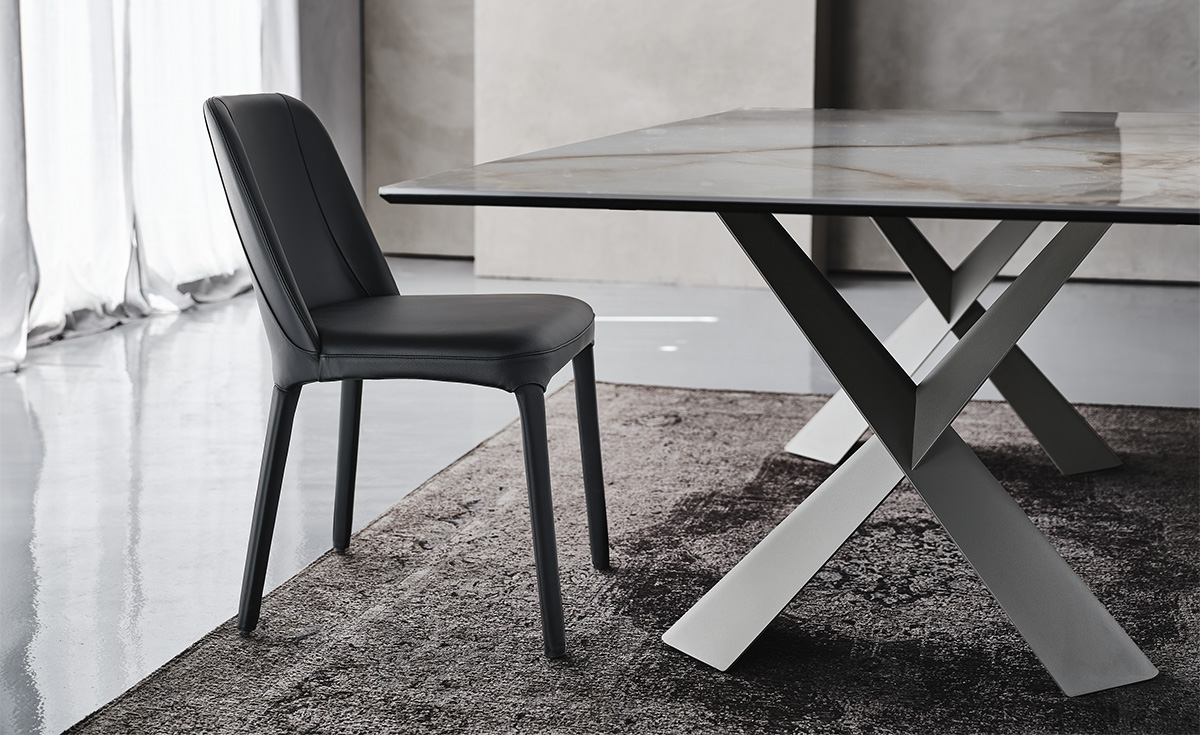 La structure en acier garantit robustesse et stabilité, tandis que le revêtement est disponible dans une large gamme de cuirs souples, micro-nubuck ou tissus raffinés issus de la collection Cattelan Italia. Chaque finition souligne la qualité artisanale et le soin apporté aux détails, notamment grâce aux coutures décoratives qui valorisent son profil délicat. L’ensemble dégage une sensation de légèreté et de chaleur, faisant de cette chaise un véritable bijou de design italien.
