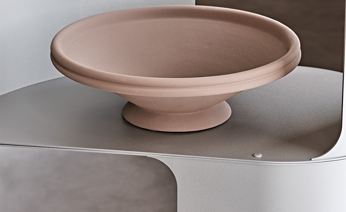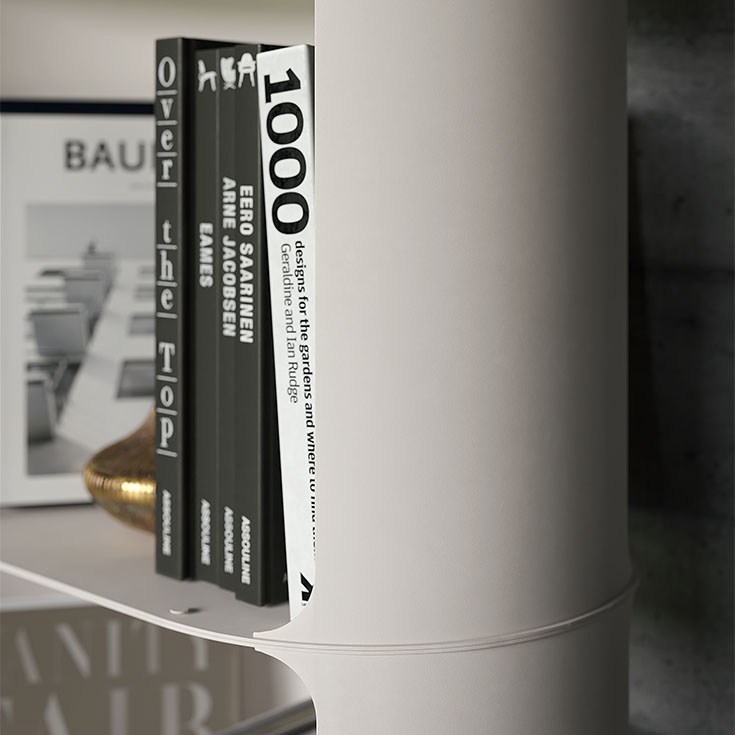 Positionnée au centre d’une pièce, cette bibliothèque design haut de gamme agit comme une séparation room divider attractive, parfaitement symétrique et équilibrée. Disponible en acier laqué embossé titane (GFM11), bronze (GFM18) ou perle (GFM70), chaque finition est moulée avec précision pour un look incisif, minimal et ultra-moderne.