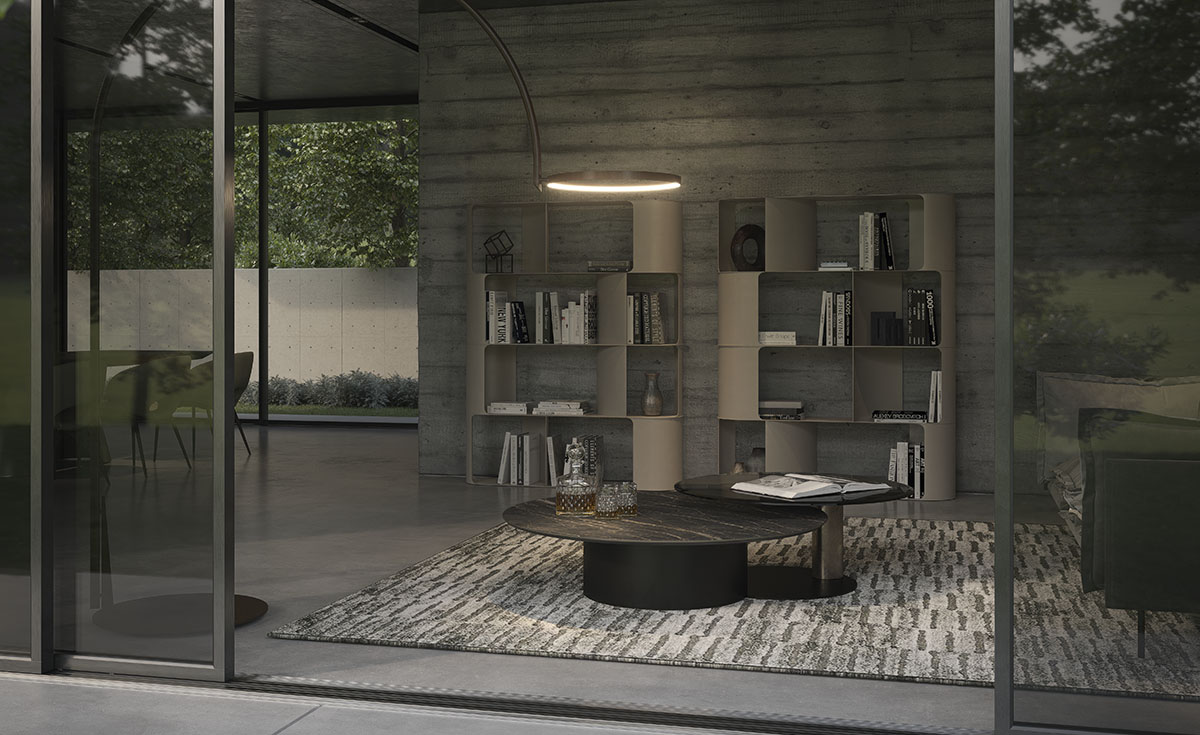 La bibliothèque Fulham conçue par Ono Design pour Cattelan Italia est une bibliothèque design haut de gamme en acier qui incarne la tranquillité et l’équilibre. Créée en 2022, cette étagère moderne base son existence sur un concept esthétique reposant sur des formes fluides aux détails décoratifs intrigants qui s’harmonisent délicatement avec le design d’ensemble.