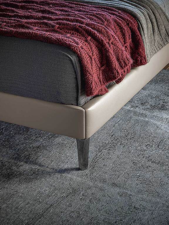 Le cadre de tête de lit est réalisé en peuplier, hêtre et tulipier massifs, recouvert d’une mousse de polyuréthane et d’une ouate de polyester pour un confort optimal. Les coussins de soutien, fixés par fermeture éclair et bandes Velcro, allient fonctionnalité et esthétisme. Le revêtement du lit Bretagne joue sur la combinaison harmonieuse du cuir Pelle Frau® pour la tête et le tour de lit, et d’un tissu déhoussable pour les coussins, créant un effet visuel élégant et équilibré. Une version entièrement en cuir est également disponible pour un rendu plus luxueux.