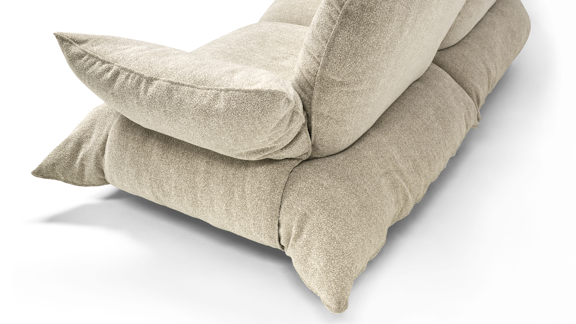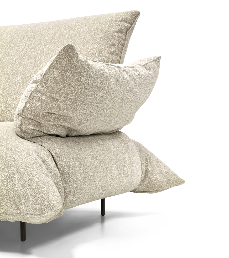 Ce canapé italien se distingue par son approche déstructurée et fluide : des coussins en mouvement qui épousent les formes, des accoudoirs adaptatifs et une assise qui s’ajuste naturellement, procurant une relaxation authentique et sans rigidité.