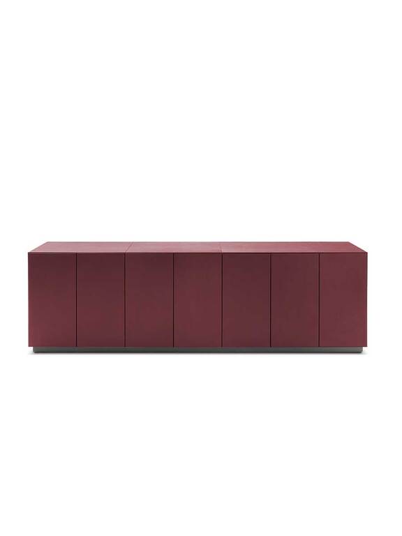 Entièrement gainé du cuir d’exception Pelle Frau®, disponible dans une large gamme de coloris dont l’élégant Avorio, le CEO Cube Cabinet se décline en trois versions : Commode équipée de roulettes pivotantes avec deux tiroirs et un tiroir classeur sécurisé, Low Cabinet (210cm) avec sept portes à pression, et Small Cabinet (120cm) avec quatre portes à pression. L’intérieur laqué noir mat contraste élégamment avec le revêtement extérieur en cuir, créant un effet de profondeur et de sophistication.