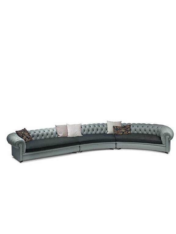 Ce canapé design haut de gamme se décline en un système modulaire complet incluant chaise longue, fauteuil sans bras, pouf, canapés angulaires terminaux et versions courbes avec ou sans accoudoirs. Cette polyvalence permet des combinaisons infinies – serpentins sinueux ou associations avec solutions linéaires – créant des configurations sur mesure pour chaque espace. Chaque élément conserve la présence sculpturale caractéristique du Chester original tout en offrant une légèreté adaptée aux intérieurs contemporains.