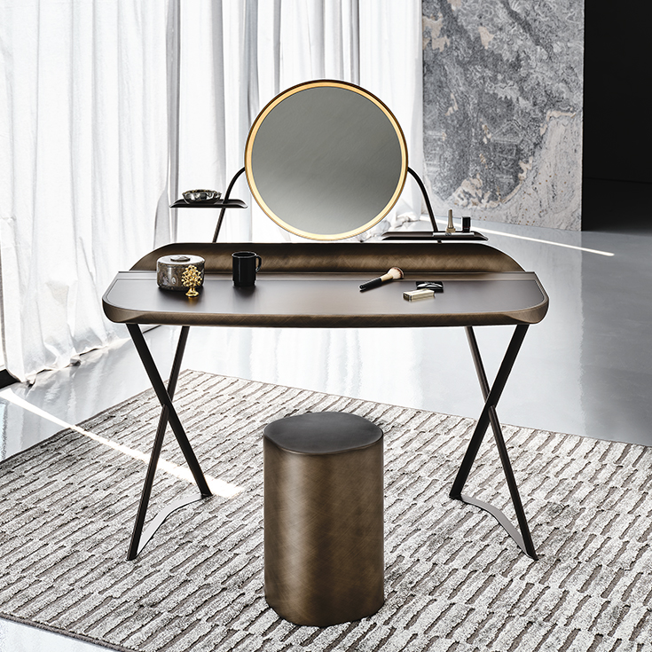 La Cocoon Trousse Leather illustre le savoir-faire italien : équilibre entre matériaux sensoriels (cuir, acier, finitions brossées) et fonctionnalité (rangement rainuré, lumière intégrée, miroir structurant). Pour un projet résidentiel soigné ou un espace professionnel élégant, elle incarne la coiffeuse design haut de gamme par essence : compacte, lumineuse, multi-usage et résolument contemporaine.
