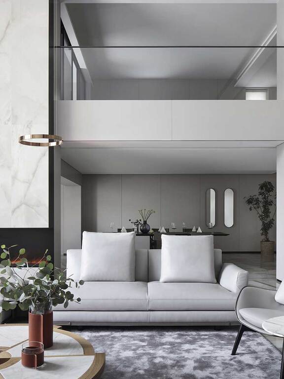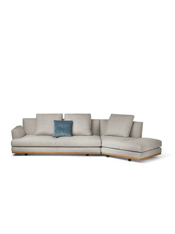 Ce canapé design haut de gamme s’enrichit d’une série de compléments polyvalents et fonctionnels : meuble d’extrémité avec double plateau généreux, meuble équipé avec compartiment escamotable, et meuble de rangement derrière le dossier avec tiroir push-pull. Ces éléments créent de véritables îlots de détente où lire, travailler, partager un café tout en maintenant un ordre parfait grâce aux solutions de rangement intégrées.