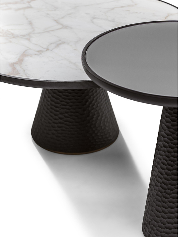 DUO | Table avec piédestal est une table basse design haut de gamme signée Roberto Lazzeroni pour Poltrona Frau. Née de la collaboration entre Poltrona Frau et Ceccotti Collezioni, cette pièce incarne l’élégance italienne et l’artisanat d’exception. Inspirée de la Dolce Vita, elle exprime la rencontre entre mémoire et innovation à travers des lignes douces, sculpturales et intemporelles.