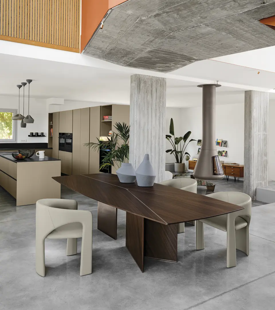 La table Epsilon par Arketipo est une table à manger design haut de gamme qui unit magistralement l’architecture et le design d’intérieur. Conçue par Manzoni & Tapinassi, cette création représente la fusion exaltante de deux univers créatifs où la robustesse structurelle rencontre le raffinement esthétique dans un équilibre parfait.