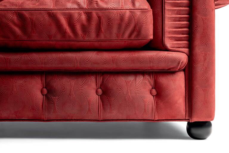 Le revêtement en Pelle Frau® Nubuck présente le motif Tribal conçu par Ozwald Boateng, une célébration vibrante de la culture et de la tradition textile africaine. Ce motif est appliqué grâce à une technique révolutionnaire de poinçonnage à chaud réalisée manuellement, représentant une innovation majeure dans le travail du cuir. La finition capitonnée, entièrement exécutée à la main, témoigne du savoir-faire artisanal d’exception de Poltrona Frau.