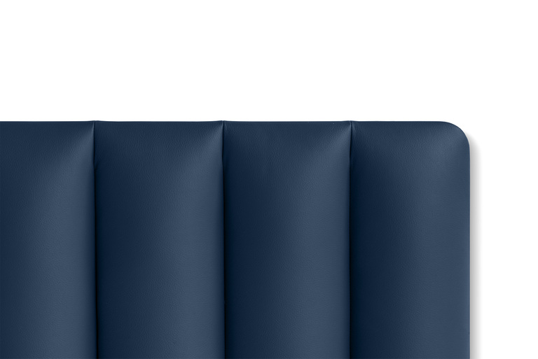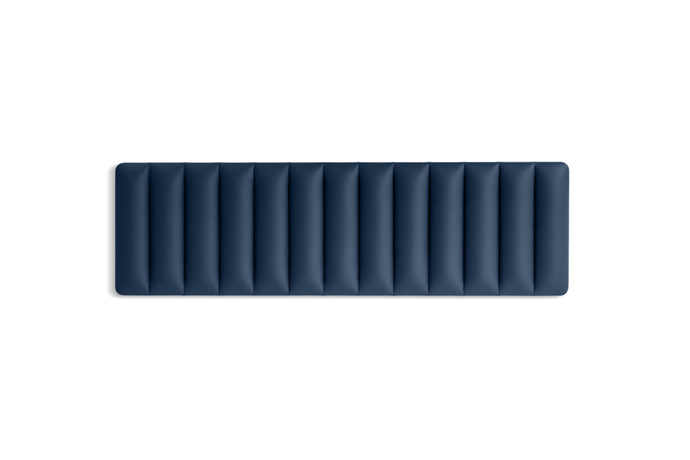 La tête de lit coordonnée est rembourrée et revêtue de cuir Pelle Frau®, avec des surpiqûres horizontales ou verticales pour un effet graphique raffiné. Elle peut être fixée au mur grâce à un système discret et peut s’adapter aux différentes longueurs de lit.