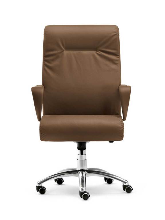 Le fauteuil Forum se décline en quatre modèles distincts : President, Executive, Managerial et Meeting, chacun adapté à des besoins spécifiques. Tous partagent la base cinq branches en aluminium, disponible en finition noire ou polie, et le revêtement exclusif en cuir Pelle Frau® qui garantit luxe et durabilité.