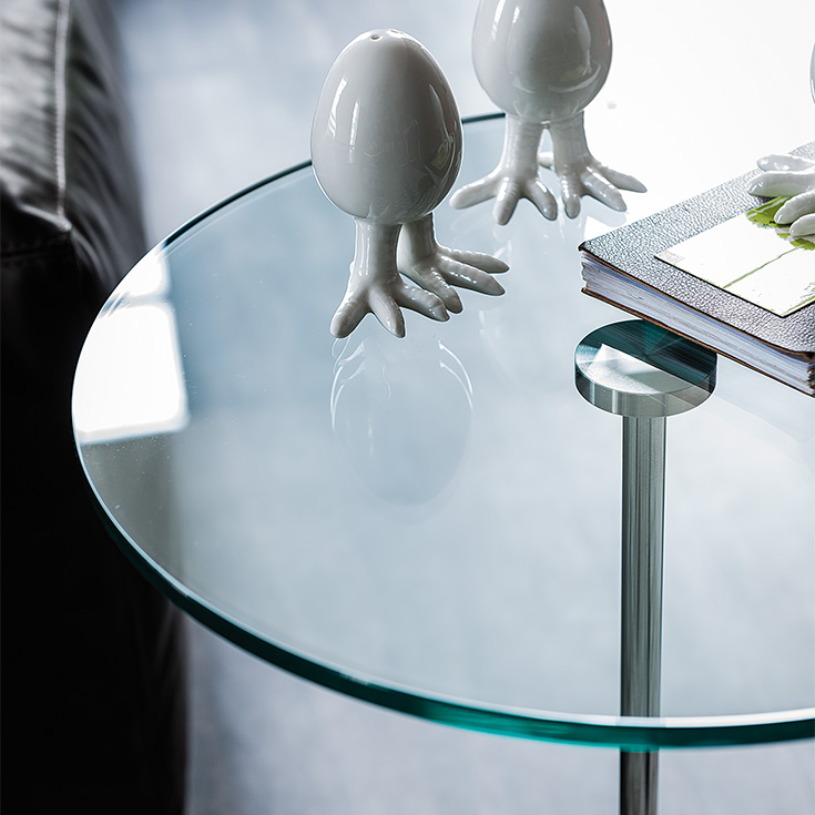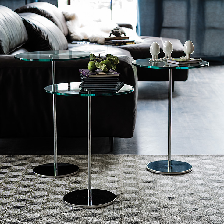 Table basse Gliss par Cattelan Italia : table basse ronde design haut de gamme en acier inoxydable et chromé avec plateau verre ou acier. Trois hauteurs disponibles.