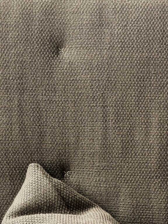 La structure de l’assise en métal tubulaire avec sangles élastiques tressées supporte un système de rembourrage perfectionné combinant mousse de polyuréthane, ouate de polyester et matelassage moelleux en tissu agrémenté de coutures en « X » faites main avec fil contrasté. Le coussin d’assise en plumes d’oie avec insert stabilisant et les coussins « mobiles » du dossier offrent un confort personnalisable. Le revêtement associe cuir sellerie (Re-Saddle, Saddle Extra ou Pelle Frau®) pour les panneaux verticaux et tissu amontable pour la base et les coussins.