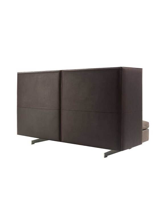 Ce canapé design haut de gamme se distingue par son silhouette architecturale affirmée et son mélange raffiné de matériaux. Les coutures en relief sur la version cuir et le travail méticuleux des finitions à la main témoignent du savoir-faire artisanal exceptionnel de Poltrona Frau. Le dossier haut en cuir précieux travaillé caractérise l’identité visuelle de ce modèle, créant une présence sculpturale dans l’espace.