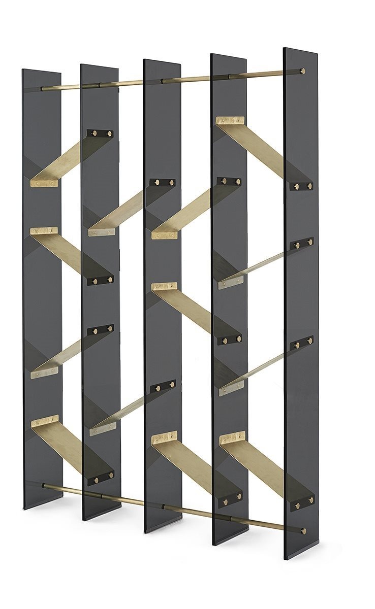 Bibliothèque design Isola par Gallotti&Radice : cette bibliothèque design en cristal extralight 12 mm (ou “grigio Italia”) avec étagères en laiton satiné structure l’espace par sa transparence et ses détails joailliers. Bibliothèque design Isola, signée Massimo Castagna (2016), allie légèreté visuelle et stabilité pour sublimer un salon contemporain. Disponible chez D-Style Interior.