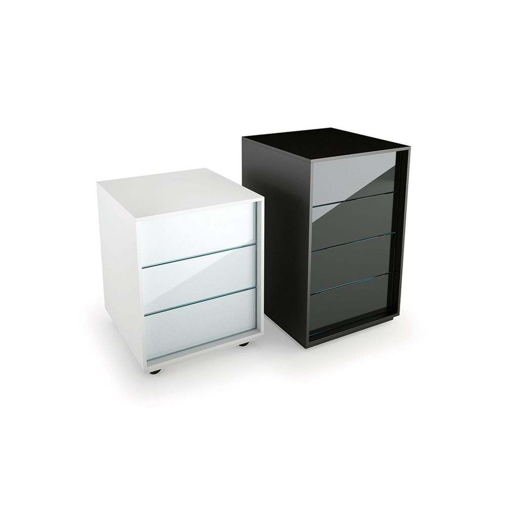 Réalisé en bois laqué opaque, le Luminare Cassettiera est disponible en deux coloris intemporels, blanc ou noir. Ses façades en verre de 6 mm peintes reprennent la teinte de la structure, créant une harmonie visuelle et un effet de profondeur discret. Pratique et fonctionnel, ce meuble est proposé avec 3 ou 4 tiroirs selon les besoins de rangement.