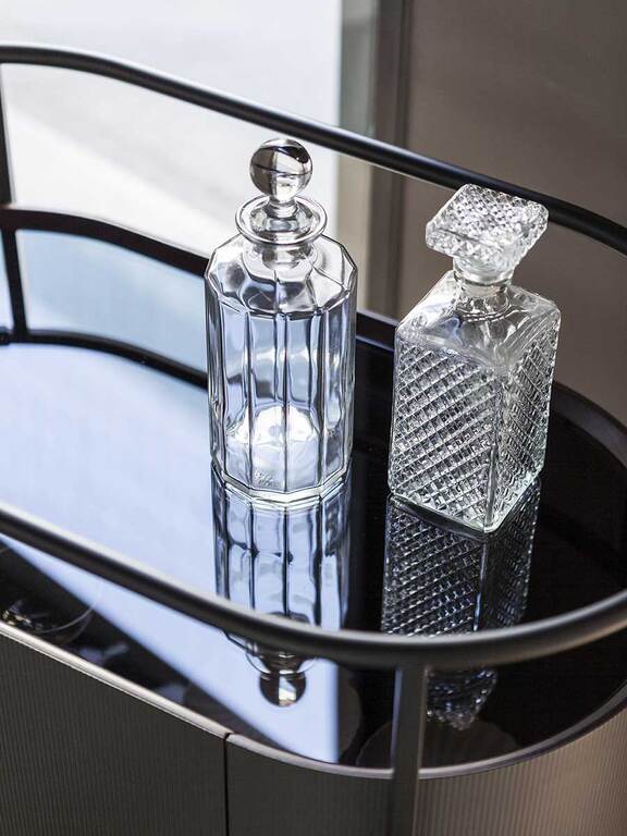 Ce bibliothèque design haut de gamme se distingue par sa surface extérieure recouverte de cuir Saddle Extra orné d’une texture cannetée inédite à rayures verticales conférant une tridimensionnalité remarquable. Le châssis, monté sur quatre roulettes pivotantes en plastique et acier noir, offre une mobilité optimale. La poignée en tube d’acier satiné bruni, partiellement recouverte de cuir Cuoio Saddle Extra avec surpiqûre manuelle, allie ergonomie et élégance. L’espace intérieur est équipé d’une tablette en verre trempé réglable à trois hauteurs différentes.