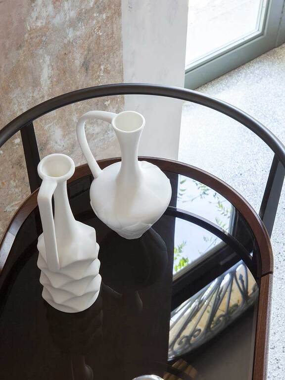 Le Mi Trolley par Poltrona Frau est un bibliothèque design haut de gamme qui allie mobilité fonctionnelle et raffinement extrême dans la collection Mi conçue par Neri&Hu. Ce chariot bibliothèque sur roulettes incarne la recherche d’équilibre parfait entre essentiel et élégance, jouant avec les lumières, les transparences et les ombres pour créer un meuble de rangement mobile d’exception.